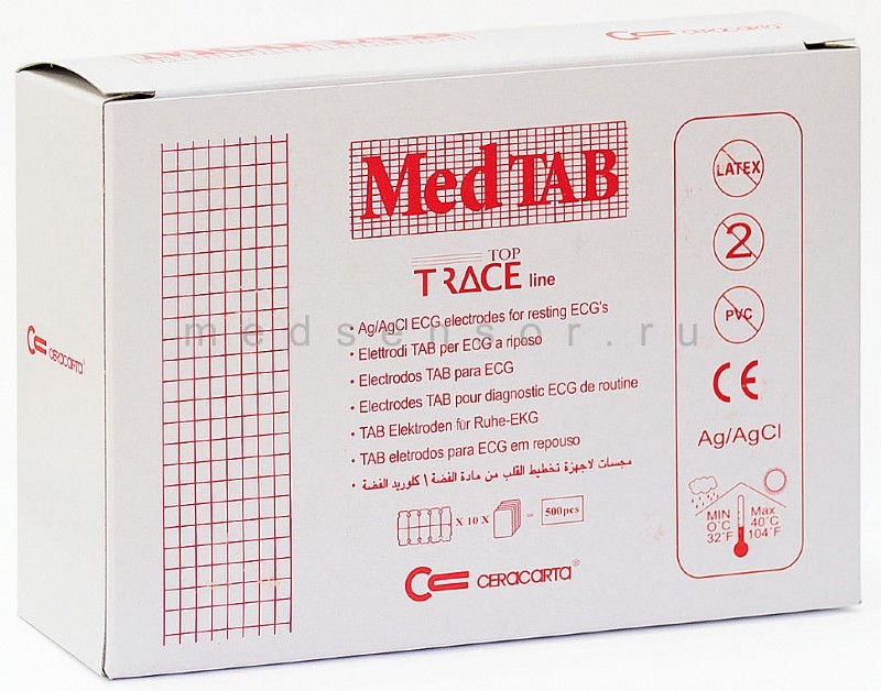 EKG elektroda typu MedTab razítko, v adhezivním a vodivém pevném hydrogelu, silikonový nosič, o rozměrech 23x34 mm.