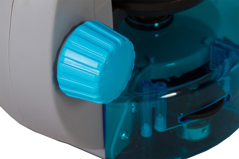 El cuerpo está hecho de plástico duradero. Por eso es tan ligero pero también fiable. Para mayor comodidad, la cabeza está inclinada 45 grados. El diseño se distingue por su alta seguridad: la iluminación funciona con baterías, no con una fuente de alimentación. Gracias a esto, el microscopio se puede utilizar al aire libre.