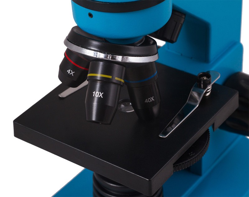 Las lentes están hechas de vidrio óptico especial con un alto nivel de transparencia. Además, las superficies ópticas están tratadas con un recubrimiento multicapa, que aumenta la cantidad de luz transmitida y mejora la calidad de la imagen. El modelo se vende con tres lentes de objetivo suministradas, por lo que el microscopio es capaz de ofrecer aumentos entre 40x y 400x. Cambiar el aumento es muy fácil: basta con girar el revólver.