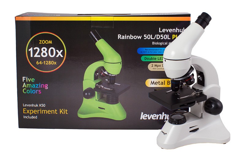 El microscopio Levenhuk Rainbow 50L PLUS sería el regalo perfecto para un adolescente curioso, un estudiante de biología o un técnico de laboratorio. La potencia de aumento máxima de este instrumento es de 1280x, suficiente para ver los detalles más pequeños de las muestras observadas bajo el microscopio. El modelo tiene un cuerpo robusto y fiable: el microscopio Rainbow 50L PLUS se puede utilizar como instrumento doméstico, así como para trabajos de laboratorio en escuelas y universidades.