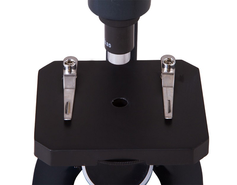 Este microscopio monocular tiene una sola lente objetivo acromática de 16x, que proporciona una visión clara sin aberraciones cromáticas o esféricas. En este modelo, la cabeza se coloca directamente sobre el escenario, pero para observaciones cómodas, puede inclinar tanto la cabeza como el escenario en el ángulo deseado gracias al brazo del microscopio.