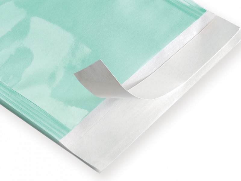 Samozatvorljive plosnate vrećice izrađene od prozirne zelene poliester-polietilenske folije spojene s medicinskim papirom koji omogućuje prodor pare i plina tijekom sterilizacije. Indikatori pare i plina mijenjaju boju kada su izloženi sterilizaciji.