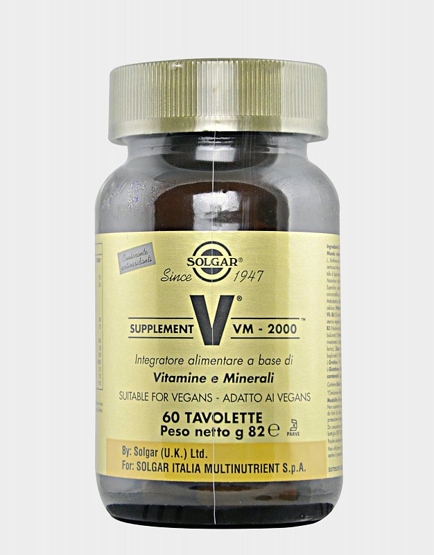 Supplement VM 2000 della Solgar è un integratore multivitaminico e multiminerale di ultima generazione adatto sia all'uomo che alla donna in grado di favorire il benessere psico-fisico in periodi di forte stress fisico e mentale, che per gli sportivi in periodi di intensa attività.