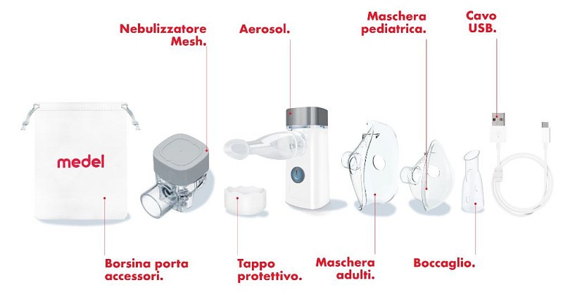I nebulizzatori mesh come il Medel Compact sono fatti con una sottile membrana contenente dei fori microscopici. Un elemento vibrante spinge il farmaco attraverso i sottili fori della membrana. Questo genera un aerosol composto da minuscole goccioline. Questi nebulizzatori sono inoltre molto silenziosi e leggeri e questo li rende ideali da utilizzare quando si viaggia e per i bambini.