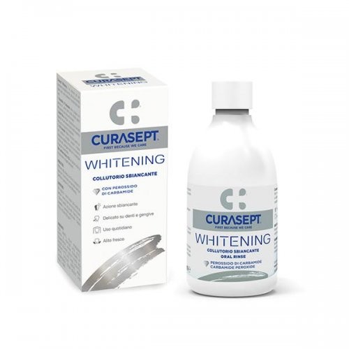Curasept Whitening è un collutorio che agisce favorendo lo sbiancamento dei denti donando sensazione di freschezza.