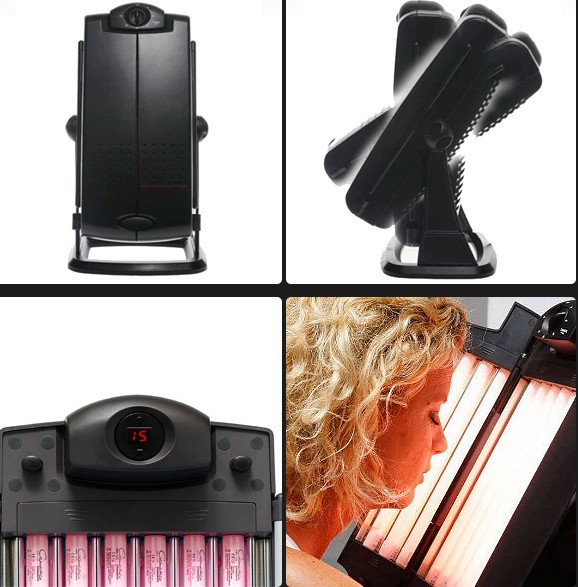 E’ composta da 12 tubi da 15W e grazie al posizionamento dei tubi e alla forma avvolgente garantiscono gli stessi risultati sul viso di una lampada di maggior potenza.