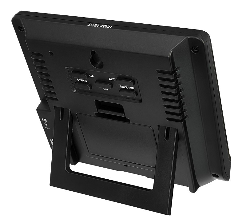 Lo schermo LCD della stazione meteo, a contrasto elevato, mostra l’ora, la data, il giorno della settimana e le previsioni del tempo. Il codice colore dei dati meteo consente di distinguere rapidamente tra i valori misurati dalla stazione base e quelli misurati dai sensori. Il record massimi e minimi di temperatura e umidità sono archiviati nella memoria della stazione la freccia aiuta a tenere traccia degli andamenti nelle variazioni dei parametri misurati. È presente anche una sveglia con opzione di ripetizione ogni 5 minuti.
