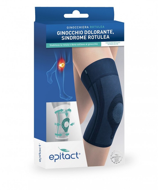 INDICAZIONI : Si raccomanda di indossare la ginocchiera rotulea EPITACT per la sindrome dolorosa ed infiammatoria del ginocchio ed in particolare per le sindromi che interessano la rotula (traumi, lussazioni, distorsioni...). Indicata per prevenire episodi di instabilità della rotula.