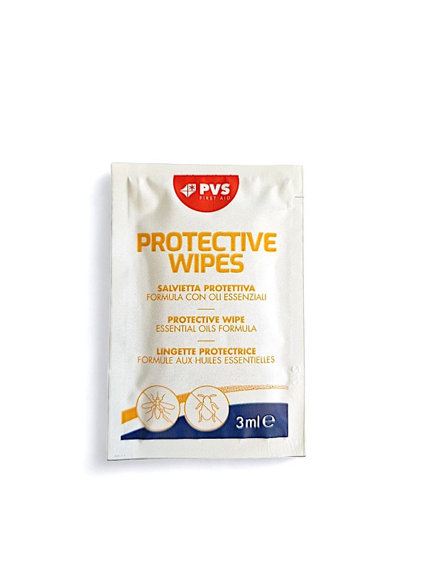 Salviette impregnate di repellente anti zanzara, confezionate in scatolette da10 bustine.