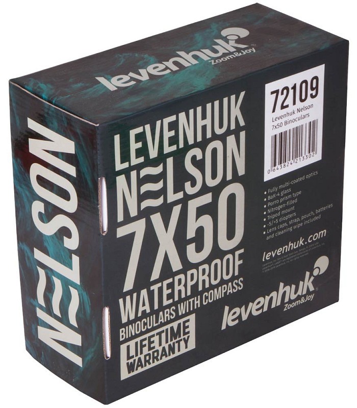 É possibile portare il binocolo marino Levenhuk Nelson 7x50 a pesca o durante una gita in mare, lago o fiume senza timore di danneggiarlo. Il corpo impermeabile protegge in modo affidabile le lenti dall’umidità. L’ingrandimento 7x è sufficiente per lo studio dettagliato di oggetti distanti. L’obiettivo con un’apertura di 50 mm raccoglie una quantità notevole di luce, offrendo così un’immagine luminosa e nitida.