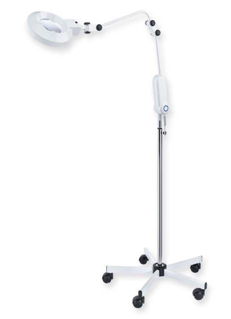 Samoświecąca lupa fluorescencyjna na zimne światło, 3 dioptrii (0,75 X). Idealny do dermatologii, wyposażony jest w lupę o średnicy 120 mm wykonaną ze szkła optycznego. Chłodne światło pozwala na długotrwałe użytkowanie. Ekran chroniący przed światłem z poliwęglanu.