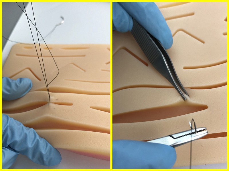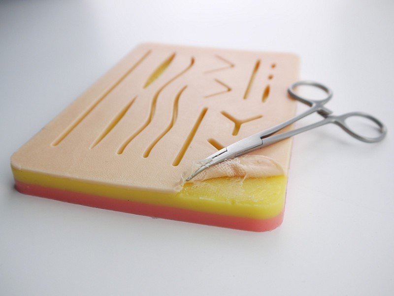 Silikonowa poduszka symulatora szwów, z 14 ranami.