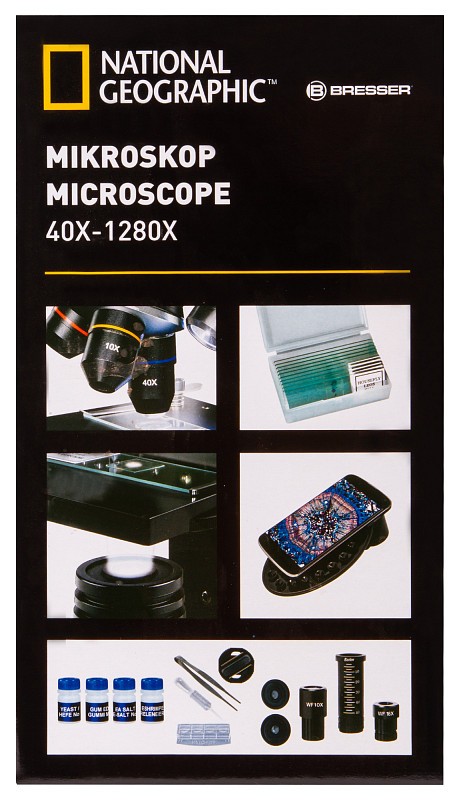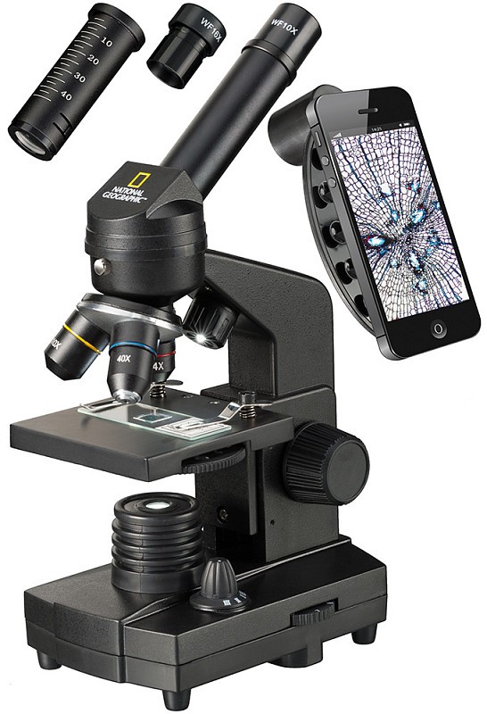 Ten mikroskop National Geographic 40-1280x z oświetleniem padającym jest idealnym narzędziem do rozpoczęcia przygody z mikroskopią. Twój podstawowy model można coraz bardziej rozbudowywać o ekskluzywne akcesoria, takie jak zestaw do preparacji lub okular elektroniczny (sprzedawany oddzielnie). Dzięki uchwytowi na smartfona możesz od razu korzystać z mikroskopu z telefonem komórkowym!
