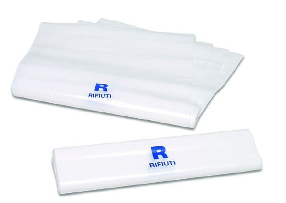 Sacchetto per rifiuti sanitari colore bianco, stampa "R rifiuti"