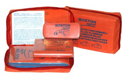 Kit di stecche conformabili per fratture in tre misure fornite con custodia in nylon. chiusura con cerniera.