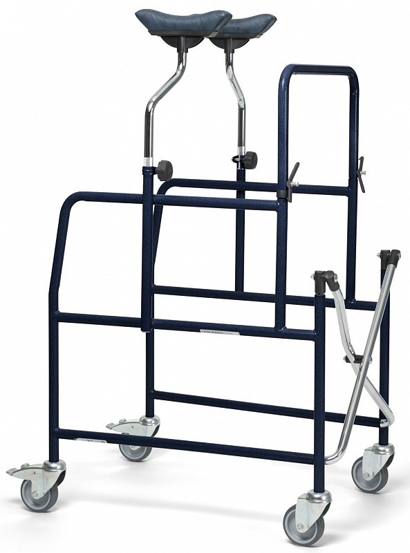 Cevasta struktura iz modro lakiranega jekla, podložene pazduhe, nastavljiva višina.