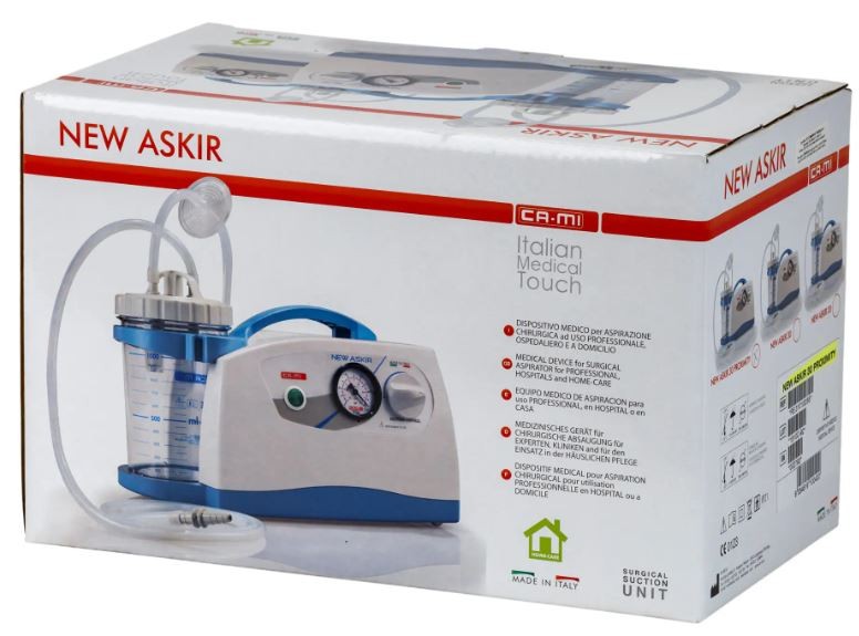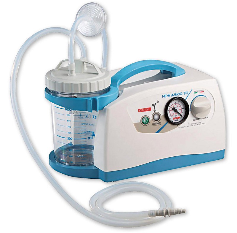 NOVO ASKIR 30 je električni aspirator za aspiracijo telesnih tekočin, oralno, nosno in trahealno aspiracijo pri odraslih in otrocih. Indiciran za uporabo v manjših operacijah, pri pacientih s traheostomo in pooperativnem zdravljenju doma, zahvaljujoč visoki moči kompresorja in sesalni zmogljivosti, ki jo zagotavlja, se lahko naprava uporablja tudi v gastroentoroloških in porodniških manevrih.